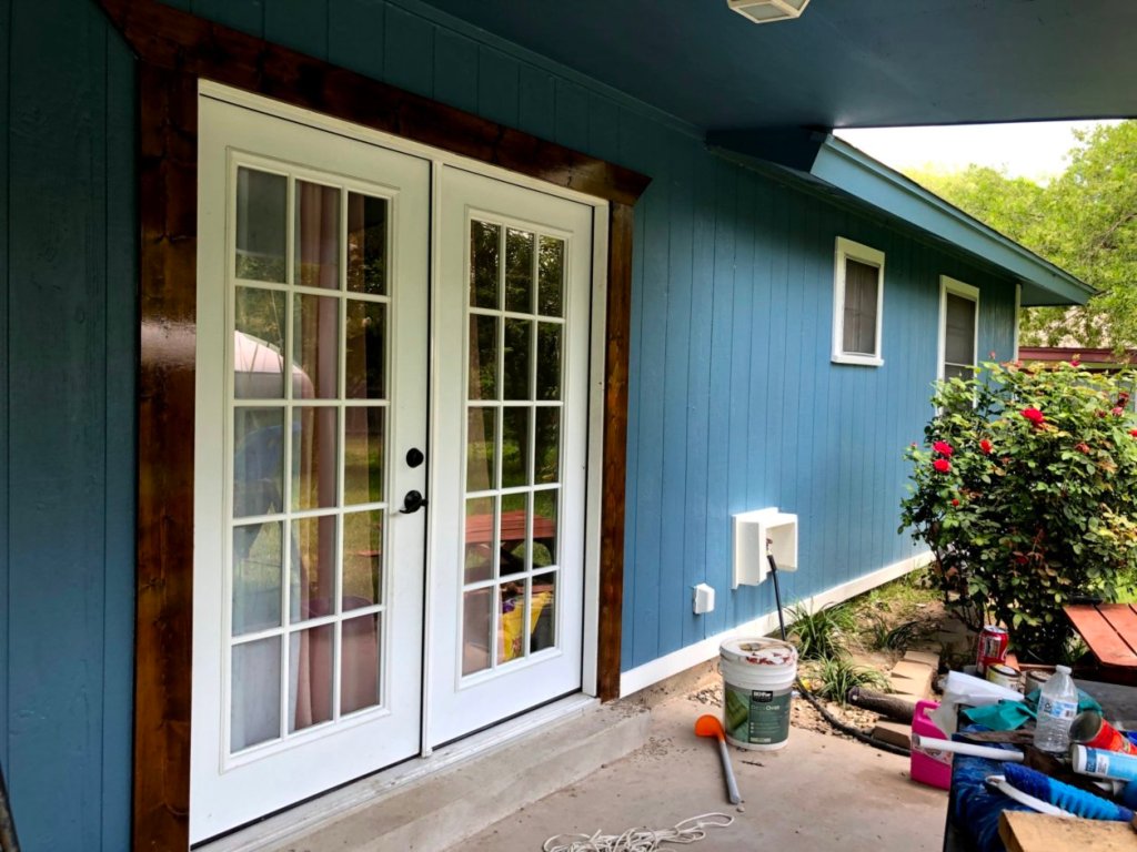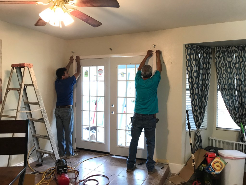 This is a remodeling project in which we replaced an outdated, sliding door to beautiful French doors.